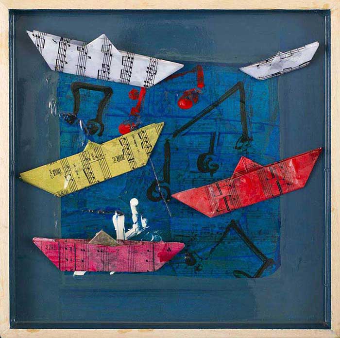 tecnica mista resina e spartiti su legno, 32 x 32